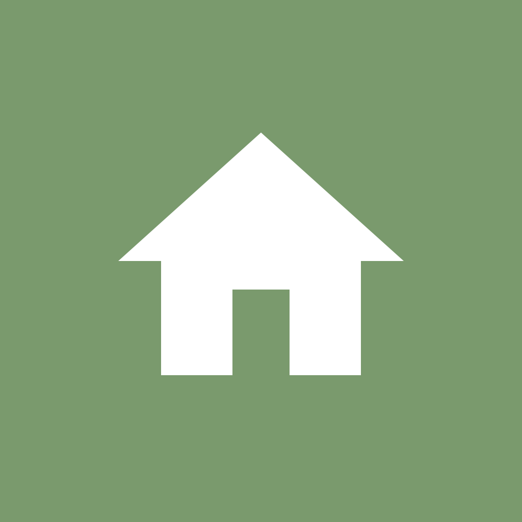 Replace default Flutter icon with white house on sage green (#7A9A6D) background.